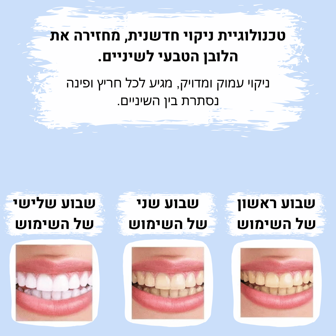אחרי שנים של פיתוח וייעוץ עם רופאי שיניים בארץ ובעולם יצרנו את מברשת השיניים שתשנה את הדרך שבה מצחצחים את השיניים. מברשת אחת, עם טכנולוגיה חדשנית, שמעניקה ניקיון מקיף ב־360°, עיסוי עדין לחניכיים והלבנה טבעית תוך 30 שניות בלבד.